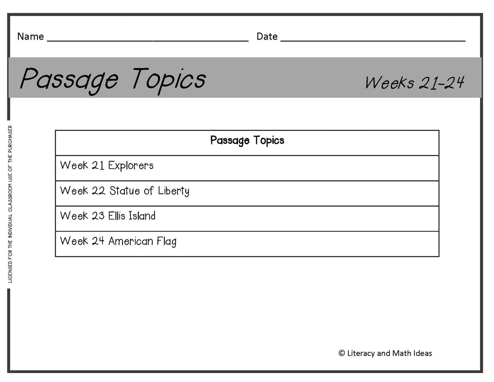 Each week is thematic to build knowledge about specific topics. Weekly progress charts and answer keys are included.