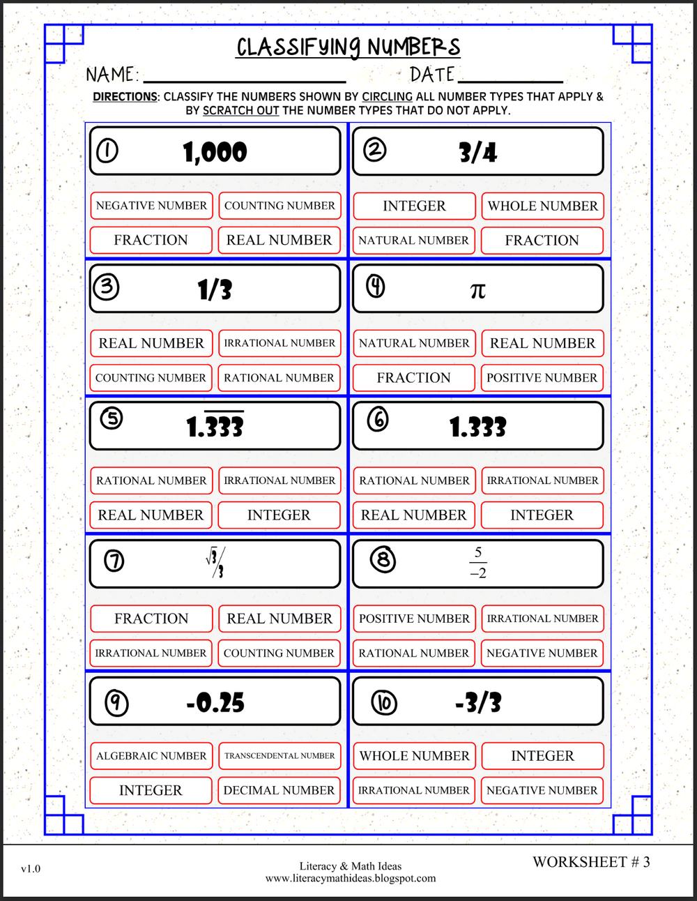 With our comprehensive Number Classification Guide included as a handy reference tool throughout the lessons, students will gain the confidence they need to identify a wide range of numbers sets, including everything from negative and positive numbers to integers and transcendental numbers. And with our included answer key, checking your students' work has never been easier or more efficient!