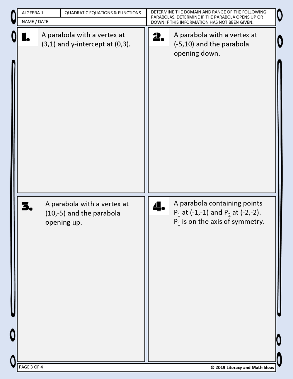 Looking for a hassle-free way to help your students identify the range/domain of quadratic functions (parabolas)? Look no further than this comprehensive resource! With 18 practice problems and detailed answers for each one, this product is a must-have for algebra teachers and students alike.