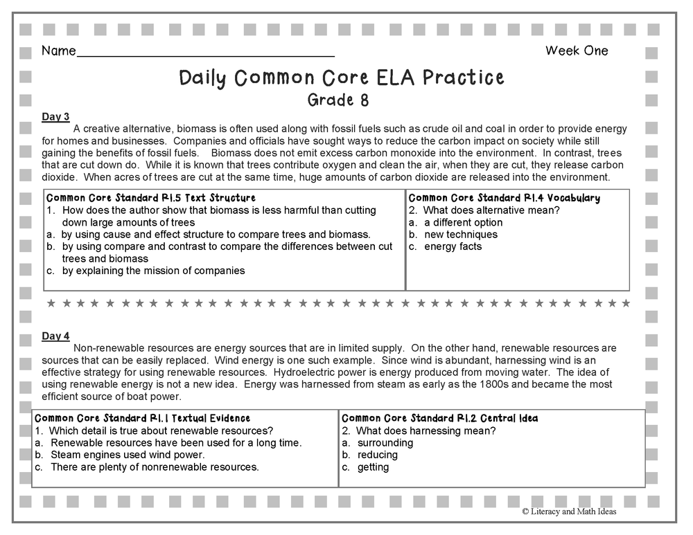 Don't let your students fall behind. Try our Grade 8 Daily Common Core Reading Practice Weeks 1-5 today!