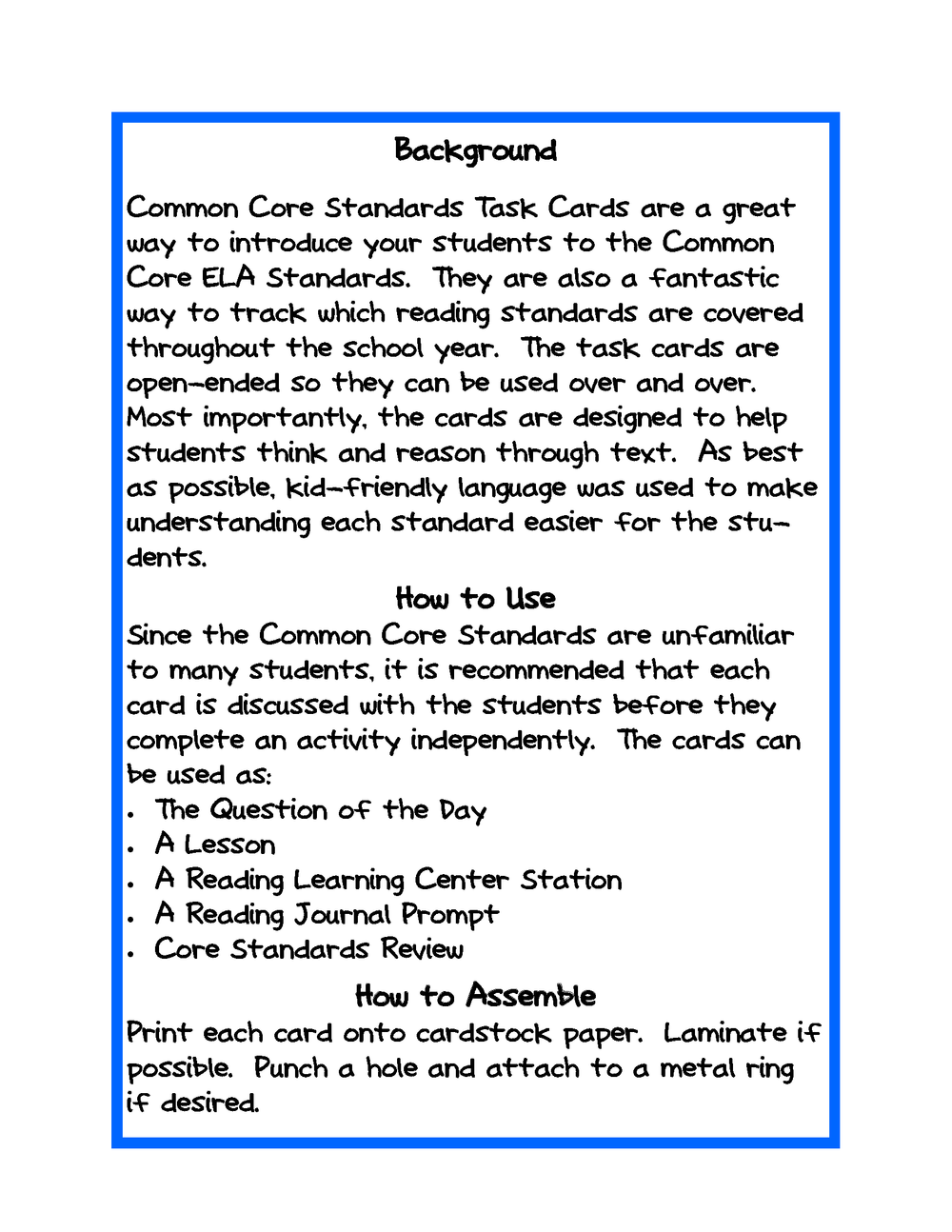 Not sure how to introduce the Common Core Standards to your little ones? Our task cards will have you covered in no time! These are perfect for engaging your students and making learning fun.