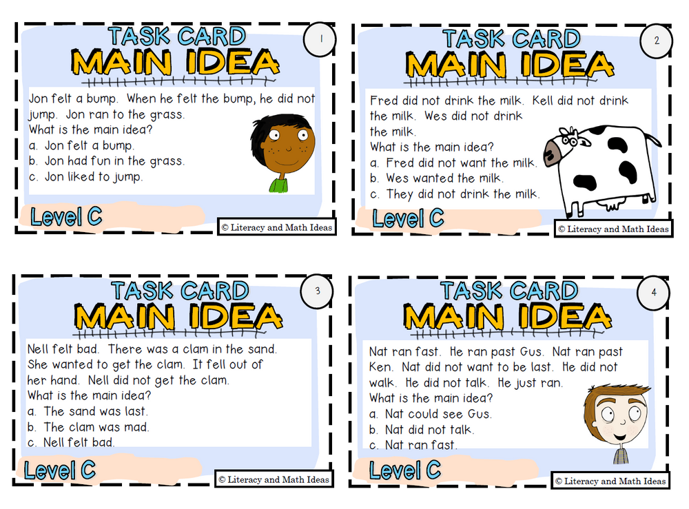 At Literacy and Math Ideas, we specialize in creating resources that provide individualized instruction and save you prep time. With our Main Idea Task Cards & Printable Reading resource, you can easily provide grades, progress monitoring data, and assessment practice for all your students at their own academic levels. Don't wait any longer to elevate your reading instruction - get this resource today!