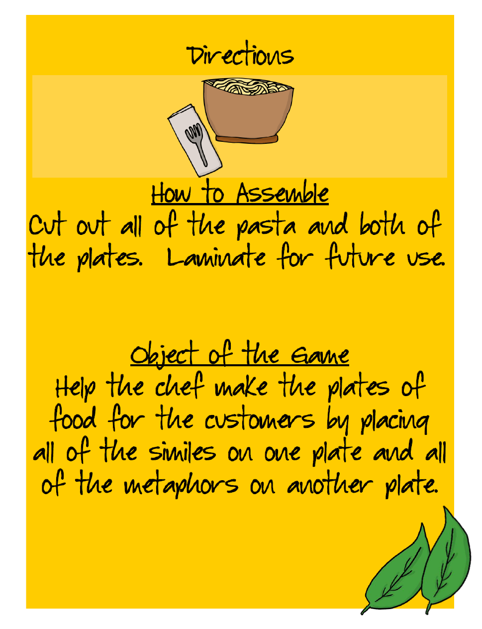 So, what are you waiting for? Give your students an educational experience they'll never forget with our Simile and Metaphor Games + Printable Centers. With two games for one low price, you won't find a better deal anywhere else. Order now and get ready to throw a pasta and pizza party your students will always remember!
