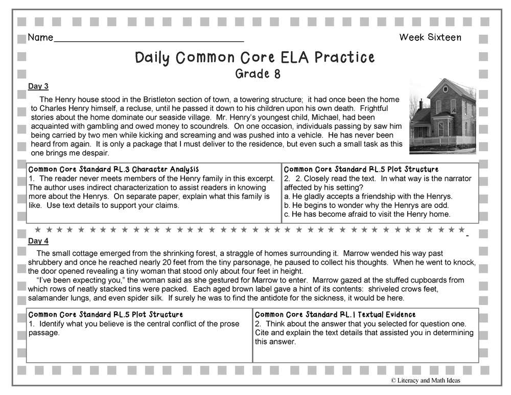 Aligned to the Common Core Standards and Common Core Publisher Specification Documents, our Grade 8 Daily Common Core Reading Practice bundle covers specific standards for each week, including character analysis, motif identification, textual evidence, and much more.
