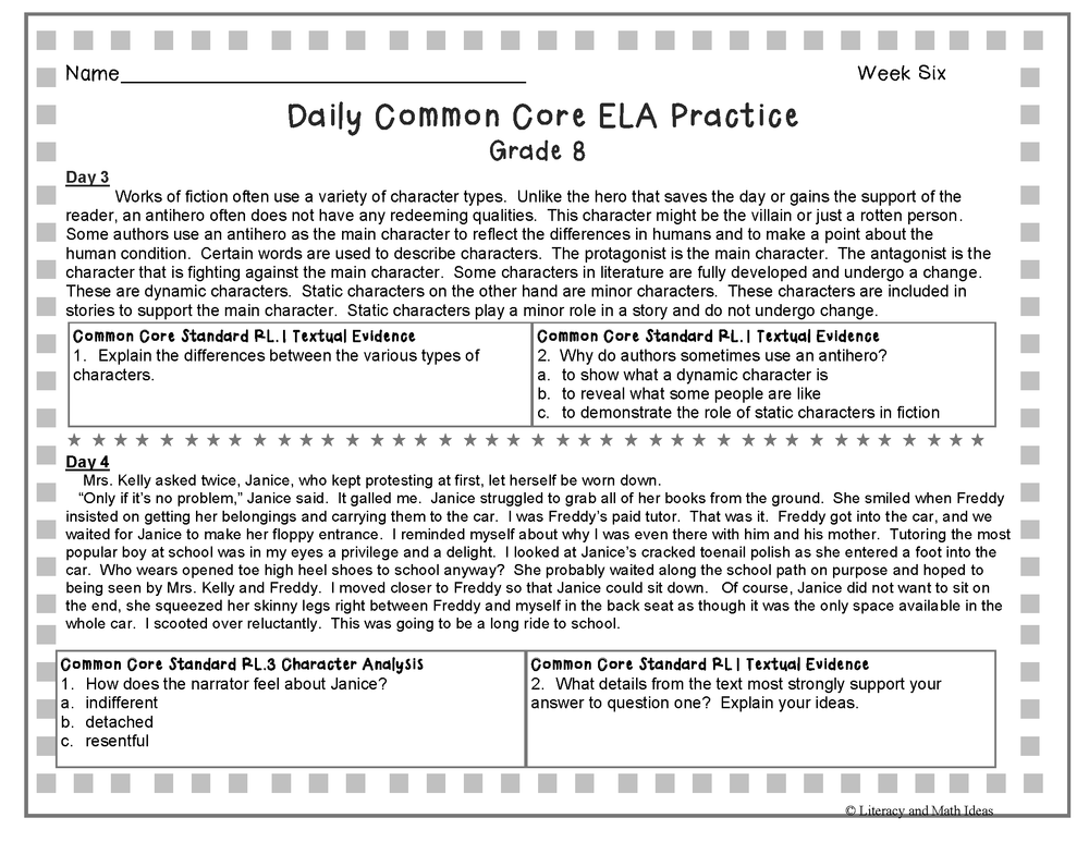 Looking to help your Grade 8 students develop their reading skills while preparing for the Common Core Standards? Introducing our Grade 8 Daily Common Core Reading Practice Weeks 6-10!
