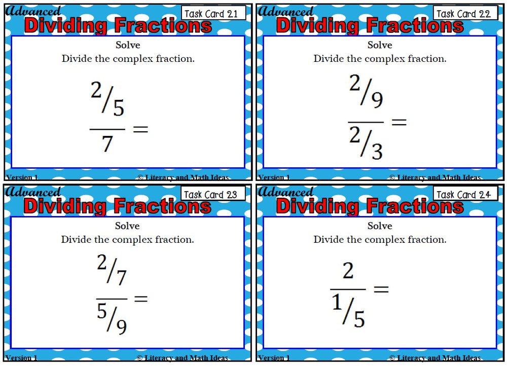 So if you're looking for a way to help your advanced learners develop a deeper understanding of math and master the complex concept of dividing fractions, look no further than our 368 Advanced Division of Fractions Task Cards. And don't forget to check out our other task cards, which are specifically designed to teach and review reading concepts!
