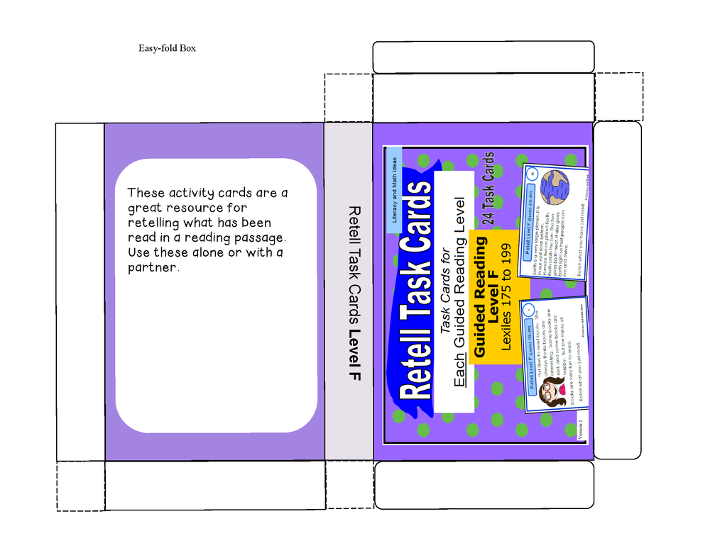 Looking for a way to take your students' guided reading abilities to the next level? Look no further than our Retell Task Cards series! With 24 cards specifically designed for guided reading level F (Lexiles 175-199), these cards are the perfect tool for differentiation and personalized reading plans.